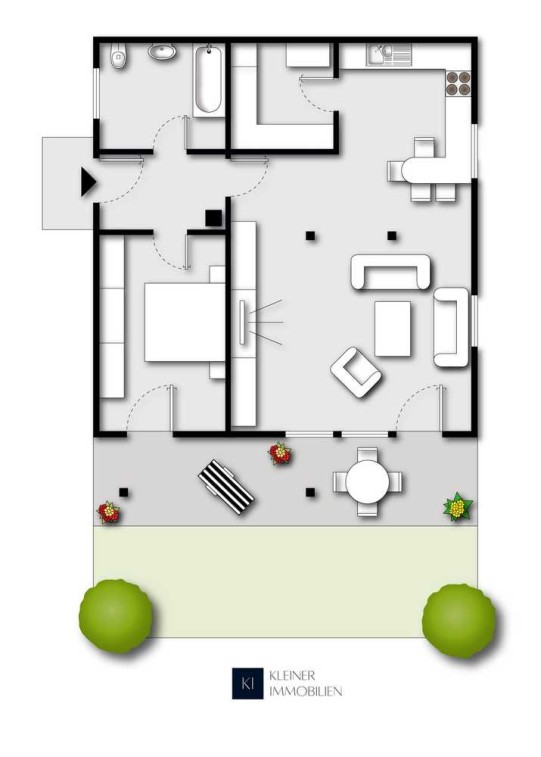 Die zum Verkauf stehende, vermietete Einliegerwohnung befindet sich im Untergeschoss eines im Jahr 1992 erbauten Holzhauses. Die ökologische Bauweise eines Holzhauses steht für Nachhaltigkeit und zeitlose Wohnqualität. Das Haus ist in zwei Wohneinheiten per Teilungserklärung aufgeteilt worden. Auf rund 64 m² bietet die zum Verkauf stehende Einlieger-Wohnung einen großzügigen Wohn-, Ess- und Kochbereich. Dieser offene Charakter macht den Raum zum Herzstück der Wohnung, zumal auch von hier aus der Blick ins umliegende Grün zu genießen ist. Besonders hervorzuheben ist die schöne Terrasse mit Blick ins Grüne, die direkt vom Wohnbereich aus zugänglich ist. Ein separates, gemütliches Schlafzimmer hat die perfekte Größe und verfügt ebenfalls über einen Zugang zur sonnenverwöhnten Terrasse. Ein Tageslichtbad mit Badewanne, Toilette und Waschbecken ist gegenüber vom Schlafzimmer angesiedelt. Die gesamte Wohnung ist mit pflegeleichten Fliesenböden ausgestattet. Zusätzlich steht ein Hausanschlussraum zur Verfügung, der auch als Abstellfläche genutzt werden kann. Ein Außenstellplatz ist der Wohnung zugeordnet. Das Haus wurde nach Wohnungseigentumsrecht aufgeteilt. Die Nebenkosten werden im Verhältnis 1/3 für die Einliegerwohnung und 2/3 für die Hauptwohnung im Obergeschoss aufgeteilt. Das gleiche gilt für Investitionen am Gesamtobjekt. Die Ausstattung der Wohnung ist einfach, aber funktional und bietet eine solide Basis für gemütliches Wohnen. Die Wohnung ist aktuell solide vermietet und eignet sich daher ideal als Kapitalanlage.