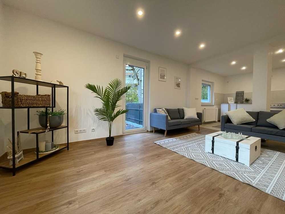Neu sanierte Wohnung in top Lage mit aufwendigem Lichtkonzept, hochwertigen Vinylböden, einem großen Balkon zur Südseite sowie zusätzlich eine eigene Terrasse mit Zugang zum eigenen großen Garten, aufwendig bearbeitete Wände, hochwertige Fliesen, Bad mit Tageslicht und Dusche sowie vielem mehr.