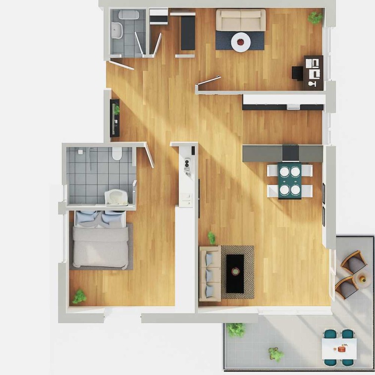 Ein Tiefgaragen-Stellplatz für Ihr Auto gehört ebenfalls zur Wohnung, ist aber mit 27.500 Euro noch nicht im Kaufpreis enthalten. Ebenfalls komfortabel ist der Kellerraum, der Stauraum für weitere Gegenstände bietet.