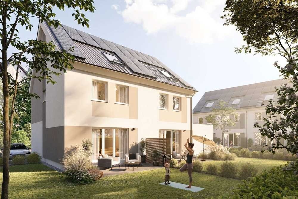 Die hochwertigen Häuser mit 5 Zimmern und Wohnflächen von 94 - 110 m² überzeugen durch eine nachhaltige Holzbauweise mit umfangreicher Ausstattung - unter anderem Designbäder und Fußbodenheizung, sichtbare Holzelemente und elektrische Rollläden sowie ein Energiekonzept mit Photovoltaikanlage und zentraler Luft-Wärmepumpe.