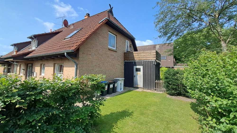 Der pflegeleichte Garten ist nahezu uneinsehbar. Von hier aus haben Sie direkten Zugang zum angebauten Garten-Abstellraum.