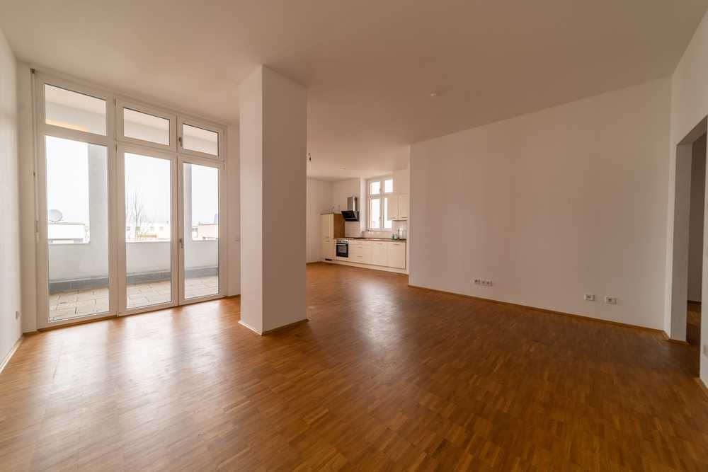 Das Herzstück der knapp 75 qm großen Wohnung ist das Wohnzimmer mit offener Wohnküche. Von hier aus gelangen Sie direkt auf die überdachte Loggia, die Ihnen einen Rückzugsort im Freien bietet – ideal, um den Tag entspannt ausklingen zu lassen. Das Schlafzimmer hat mit ca. 17qm ausreichend Platz.