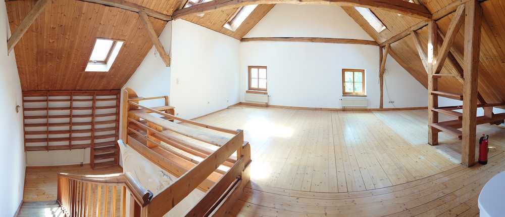 Charmante „Bauernhaushälfte“ über 2 Stockwerke [EG+1.OG+DG] in Nachbarschaft zur malerischen Windach, mit grosszügiger Atelier-Galerie im DG und einer Wohnfläche von etwa 207 m² [ohne Terrassenanteil], zugänglich über den Hauseingang und den separaten [verschliessbaren] Zugang von der S/W-Terrasse [Einliegergerecht]. WEG- Grundstücksfläche ca. 598 m² [Anteil 3/5].