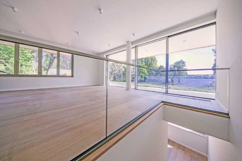 Betritt man die Wohung öffnet sich der Blick zum großen Wohnraum mit den bodentiefen Panorama-Fenstern. Wie ein Gemälde zeigt sich der große Wannsee in seiner ganzen Schönheit zu allen Tages- und Jahreszeiten.