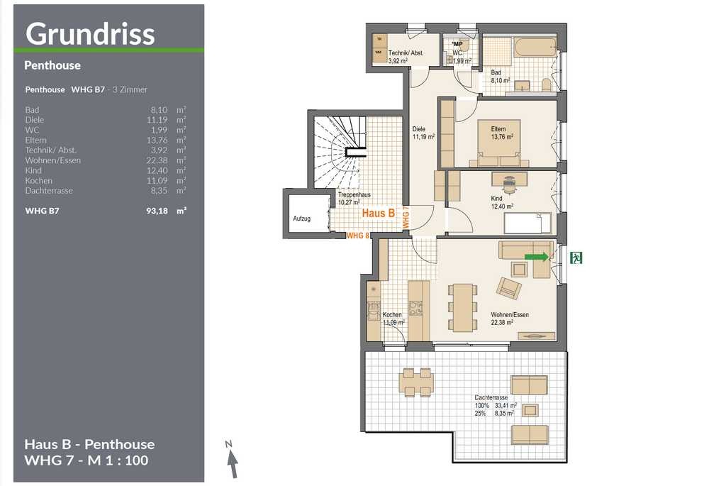 Penthouse Eigentumswohnung mit Dachterrasse, Stellplatz, Süd/Ost-Ausr.