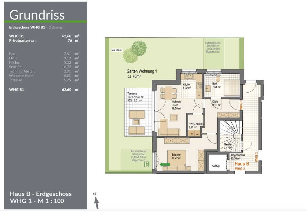 Barrierefreie ETW, 76m² Garten, Terrasse, Stellplatz, Nord/West-Ausr.