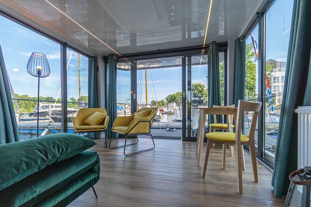 Mit einer Größe von 11 m x 3,6 m bietet das Hausboot ausreichend Platz für Ihren Komfort. Im gemütlichen Wohnzimmer können Sie bei einem Glas Wein entspannen.