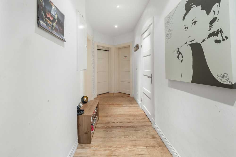 Die Wohnung verfügt über drei geräumige Zimmer mit schönem Dielenboden, der dem Wohnraum eine behagliche Atmosphäre verleiht. Jedes Zimmer ist mit Kassettentüren ausgestattet. Die Fenster wurden 2025 vollständig erneuert, was energetisch wie optisch einen deutlichen Mehrwert darstellt. Sie erreichen alle Zimmer über den zentralen Flur, über die Küche begehen Sie den Garten.