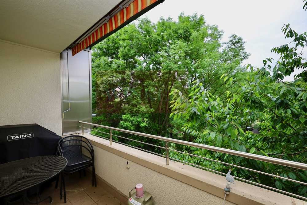 Das Wohnzimmer erreichen Sie zu dem von der Diele aus geradeaus. Auch von hier aus haben Sie direkten Zutritt zur Loggia. Die Loggia verfügt über eine angenehme Größe und ist nach Westen ausgerichtet. Hier können Sie, neben dem Blick ins Grüne, auch die Nachmittagssonne genießen.