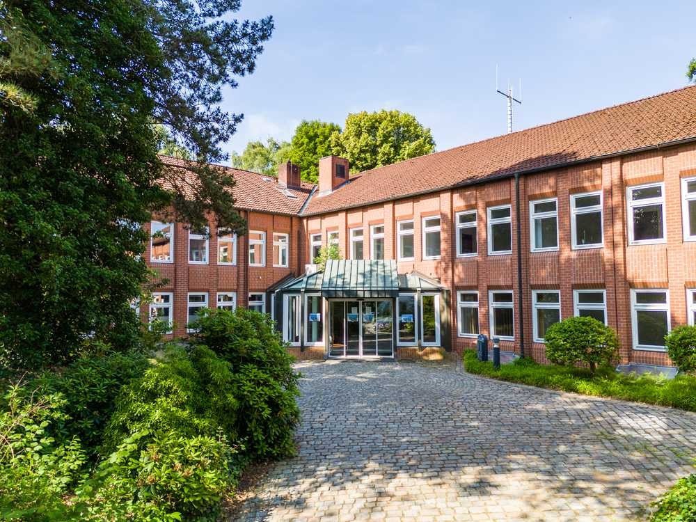 Das Gebäude wurde 1982 in hochwertiger Bauweise vom Land Schleswig-Holstein errichtet und verfügt über einen modernen Eingangsbereich mit Personenaufzug. Die rund 1.532 m² Bürofläche im Erd- und 1. Obergeschoss ist zeitgemäß ausgestattet – unter anderem mit hochwertigem PVC-Bodenbelag, EDV-Verkabelung sowie großzügigen Fensterelementen, die für eine sehr gute Belichtung sorgen.