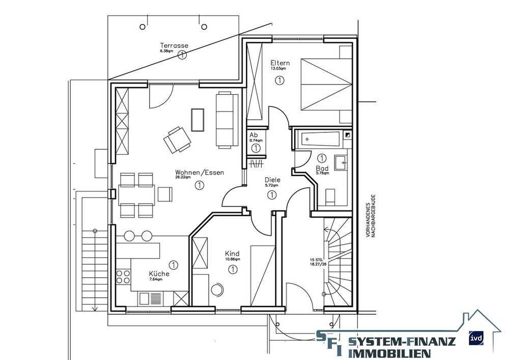 Zur Wohnung gehört ein KFZ-Stellplatz (im Kaufpreis enthalten) im Freien und ein Abstellraum im Keller.