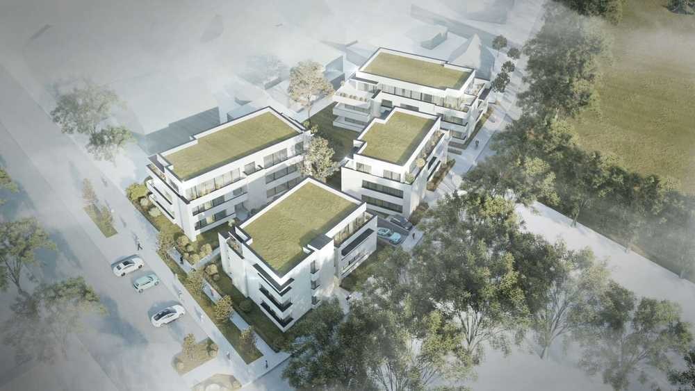 vier modernen Mehrfamilienhäusern, die energieeffizientes und nachhaltiges