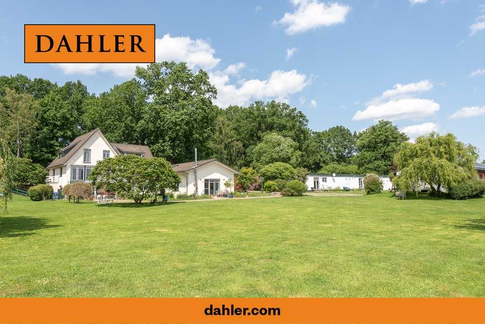 Zur Außenanlage gehören ein romantischer Naturteich, ein historischer Baumbestand mit Exemplaren, die über 300 Jahre alt sind, sowie ein separater Hundeauslaufbereich. Die elektrisch gesteuerte Toreinfahrt, zwei Rasenroboter und ein eigenes Brunnenwasser-System sorgen für Komfort und Autarkie. Die neu eingedeckten Dächer der Nebengebäude sind zudem mit einer Photovoltaikanlage ausgestattet – ein weiterer nachhaltiger Pluspunkt dieser Liegenschaft. Historisches Feldsteinpflaster rundet das Gesamtbild stilvoll ab.