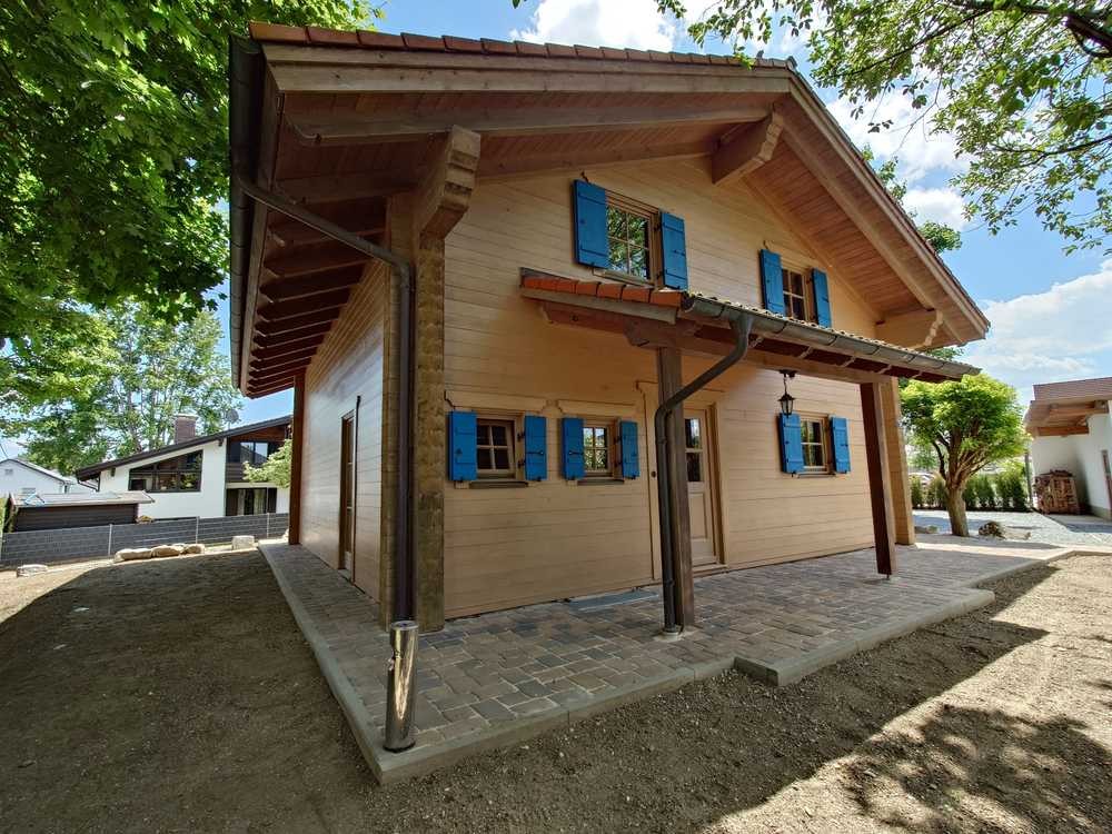Einzigartiges „Massiv-Blockhaus“ [Vollholz] mit EG und DG, das authentisches „Kanada-Feeling“ vermittelt, idyllisch gelegen nahe der malerischen Singold.