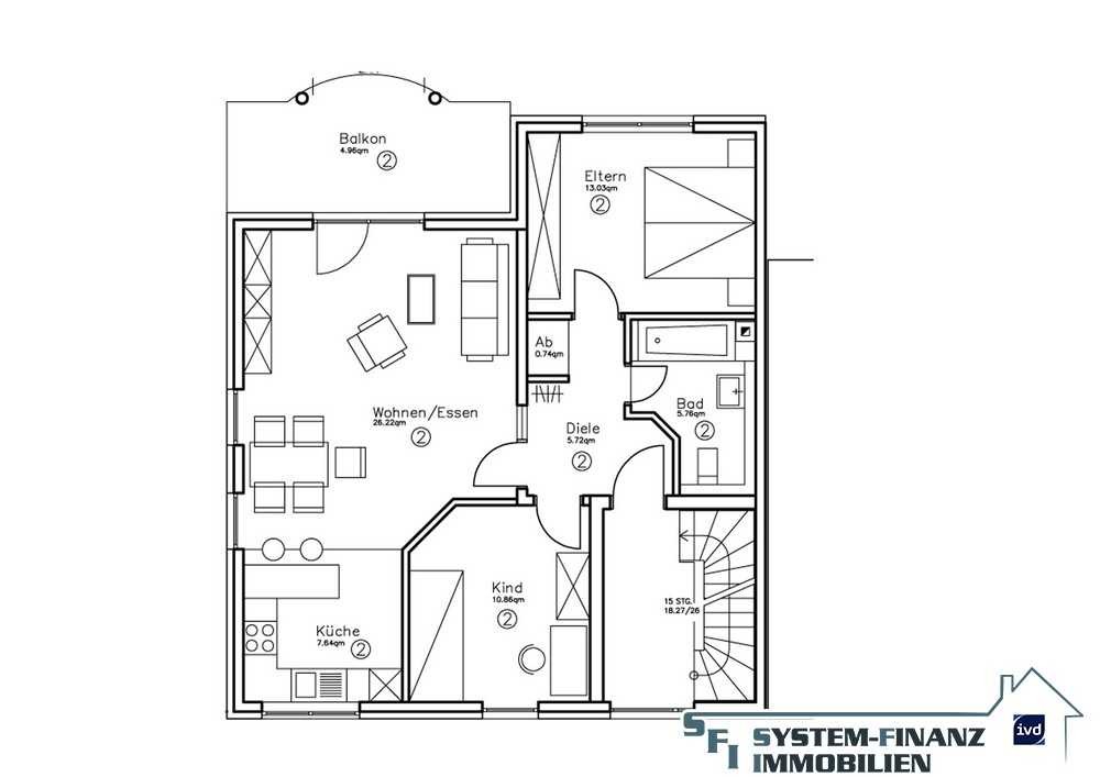 Zur Wohnung gehört ein KFZ-Stellplatz (im Kaufpreis enthalten) im Freien und ein Abstellraum im Keller.