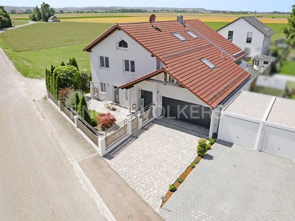 Außenanlagen – Der vielseitige Außenbereich wird an warmen Tagen zum zweiten Wohnzimmer. Der durchdacht gestaltete Garten verfügt über einen überdachten Freisitz mit Essbereich einer Outdoorküche mit eigenem Pizzaofen und einem überdachten Loungebereich zum Entspannen, sowie einem beheizten Pool mit Wasserüberlauf, modernem Wasserfall im Hintergrund und Außendusche. Der Grundwasserbrunnen gestaltet die Gartenbewässerung nachhaltig und kostengünstig. Ihre Autos parken Sie in der vollständig ausgebauten und beheizten Doppelgarage mit direktem Zugang zum Eingangsbereich des Hauses.