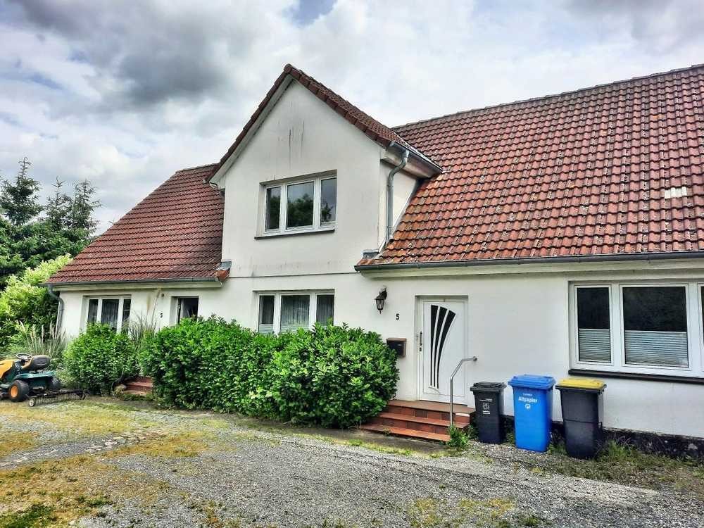 Das ca. 1908 erbaute und nicht unterkellerte Haus wurde schon in frühester Zeit als Wohnsitz für 2 Familien genutzt. Die Wände sind aus Lehm, mit vorgesetzten Klinkern, das dem Haus ein gutes Innenklima garantiert. Das gedämmte Dach ließen die Eigentümer in den 90er Jahren erneuert, so auch die Fenster komplett. Auch in dieser Zeit wurden die Klinker außen mit einem Spritzputz versehen. Im EG der rechten Haushälfte sind 3 Zimmer zu finden, samt Bad und HWR, 2 Fluren und der Küche, im Dachgeschoss stehen weitere 3 Zimmer mit einer kleinen Küche zur Verfügung. Die linke, im Ausbau befindliche Wohnung, soll im EG einen großen Wohnraum und ein Bad mit einer Dusche beinhalten, über eine Treppe kann das Dachgeschoss betreten werden, welches vielfältige Nutzungsmöglichkeiten offen hält. Der hintere Teil des Grundstücks ist ca. 2500 m² groß, hat eine eigene Zufahrt und könnte, da die Nachbarbebauung in einer Flucht ist, sicher auch bebaut werden, mit einer kleinen Bauvoranfrage könnte eine Aussage dazu getroffen werden, eine Teilung erfolgte bisher noch nicht. Die Fläche des vorderen Teils mit dem Haus hat eine Fläche von 1200 m². Nicht zu vergessen ist das große Stallgebäude mit einem Strohboden, welches weitere Ausbaumöglichkeiten verschiedenster Art bietet. Ein sehr interessantes Objekt durch die 2 Wohnbereiche und das tolle Grundstück.