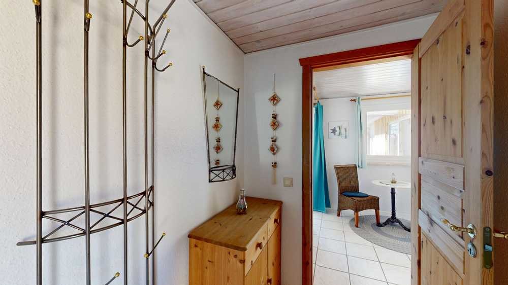 Auf ca. 70 m² verteilen sich über einer Etage ein helles großes Wohn- und Esszimmer, eine offene Küche, zwei Schlafzimmer, ein Bad, eine Sauna, zwei kleine Abstellräume und eine Terrasse.