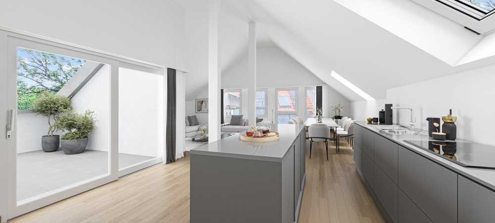 Ein Aufzug bringt Sie direkt in Ihr neues Zuhause. Mit 137 m² Wohnfläche bietet diese Wohnung Raum für Anspruch, Stil und außergewöhnliches Wohnen. Der großzügige, loftartige Wohnbereich beeindruckt durch die außergewöhnliche Raumhöhe bis zum First und bietet viel Platz für individuelle Gestaltungsmöglichkeiten.