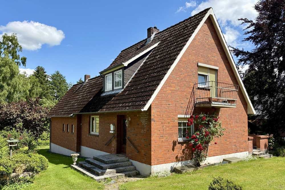 Das Haus wurde ca. 1964 erbaut und hat vier Zimmer, die sich auf zwei Etagen verteilen. Ca. 100 m² Wohnfläche bieten genügend Platz zum Leben, Feiern und Einrichten. Zusätzlich wurde der ehemalige Stall wohnlich zu einem Kaminzimmer umgebaut und bietet einen herrlichen Blick ins Grüne !