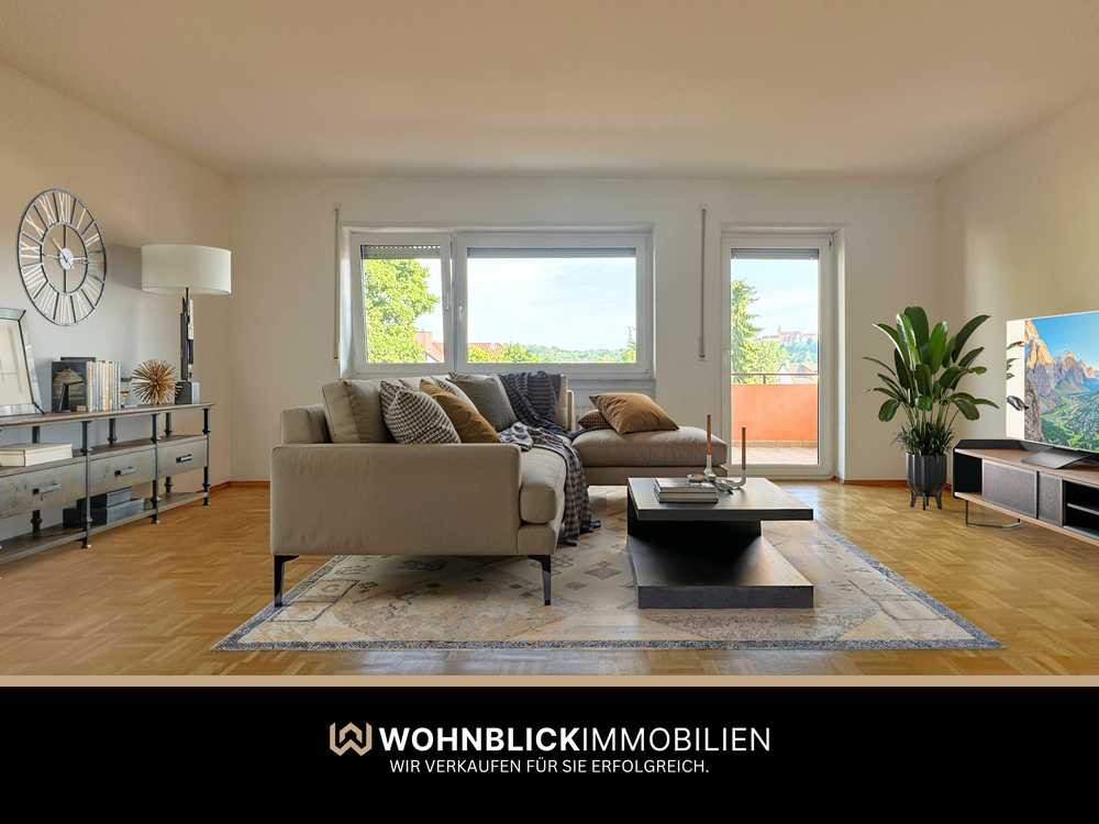 Der großzügige Wohnbereich mit direktem Zugang zum Balkon bietet ein angenehmes Wohngefühl, das durch den besonderen Ausblick auf das historische Wahrzeichen von Bad Wimpfen zusätzlich aufgewertet wird.