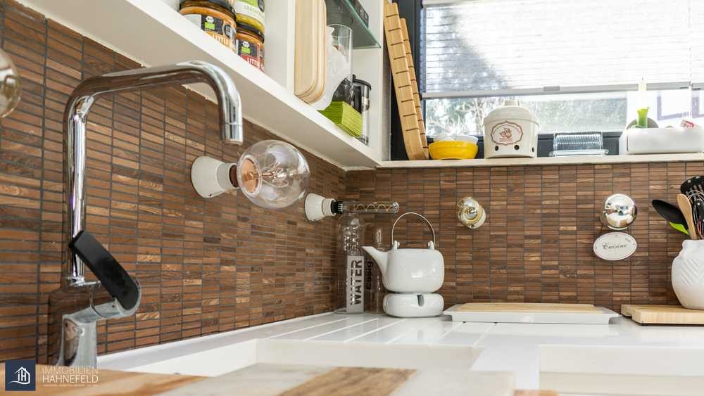 Die moderne, funktionale Küche ist mit hochwertigen Einbaugeräten ausgestattet und bietet direkten Zugang zur Terrasse.