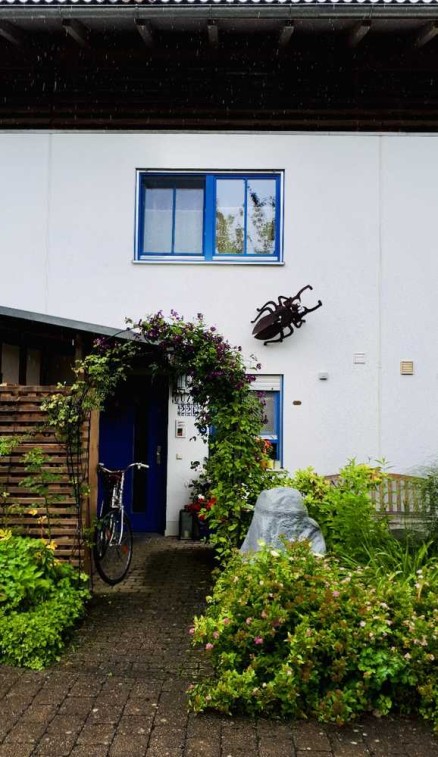 Klettergerüst und Kinderspielplatz sind hinter dem Haus.