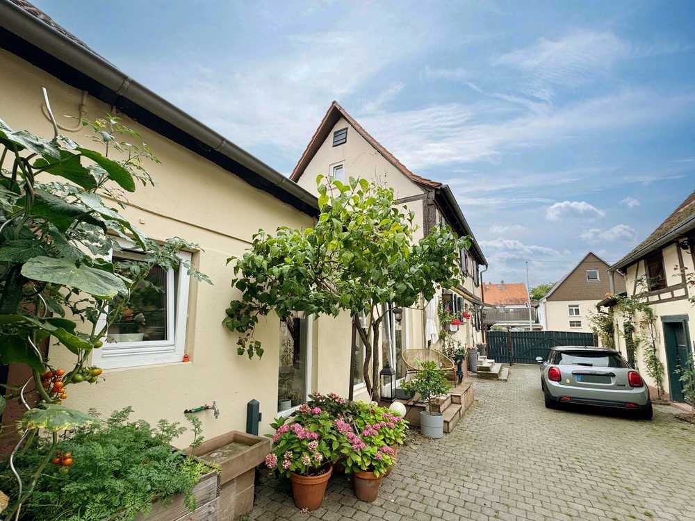 Diese ca. 1750 erbaute, denkmalgeschützte Hofreite wurde ab 2013 kontinuierlich saniert. Zur Erhaltung dieses hessischen Kulturdenkmals wurde u.a. das Dach neu aufgeschlagen und mit einer KfW-geförderten Unter- und Zwischensparrendämmung versehen. Die komplette Elektrik wurde erneuert, ebenso alle Heizkörper hochwertig ersetzt, die moderne Pelletheizung sorgt für ein angenehmes Wohngefühl. Der gesamte Grundriss bietet einer Familie ein wunderschönes Zuhause, der großzügige Wohn-Essbereich mit offener Küche wird zum gemütlichen familiären Treffpunkt. Auch der schön gestaltete Außenbereich mit Freisitz, Hof, Scheune und einem ca. 120m² großen Garten lässt Wohnträume wahr werden. Das Gießwasser für die Pflanzen liefert ein ca. 7m tiefer Brunnen. Der ehemalige Pferdestall kann noch z.B. zu einem Gästehaus ausgebaut werden, beherbergt aber schon heute ein Doppel-WC, was für Hofpartys und Kindergeburtstage sehr praktisch ist. Die 1834 erbaute Scheune inkl. saniertem Gewölbeweinkeller mit angrenzendem Garten bietet viel Raum für die Freizeitgestaltung – hier wurde sogar schon Hochzeit gefeiert.