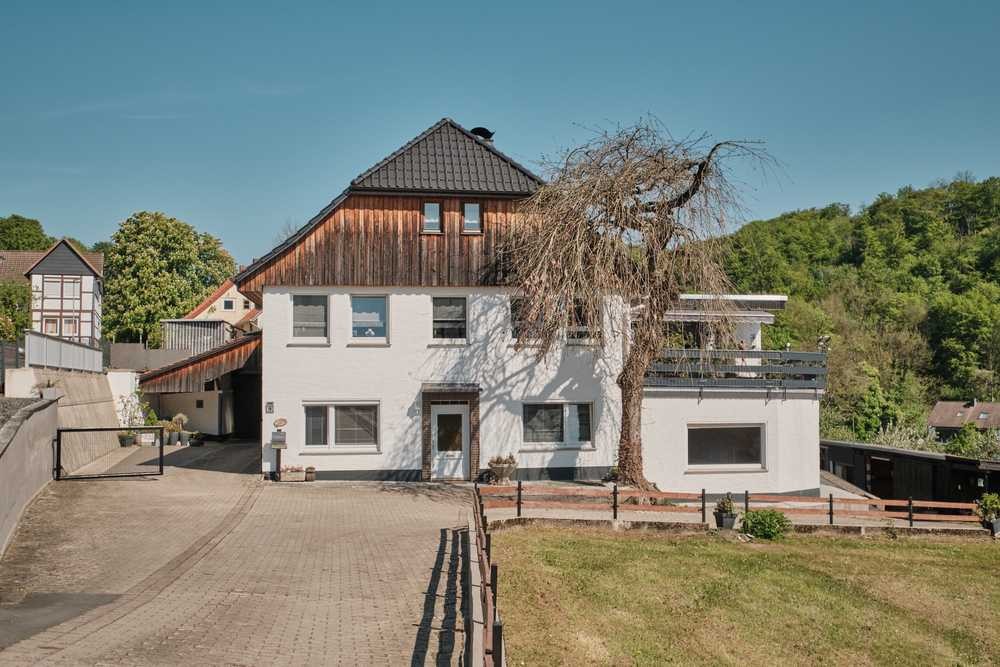 Das idyllisch im Grünen gelegene Objekt mit weitläufigem Garten bietet ein großzügig geschnittenes Wohnhaus und ist durch zwei abgetrennte Wohneinheiten mit zwei Hauseingängen als Mehrgenerationen- oder Dreifamilienhaus geeignet.