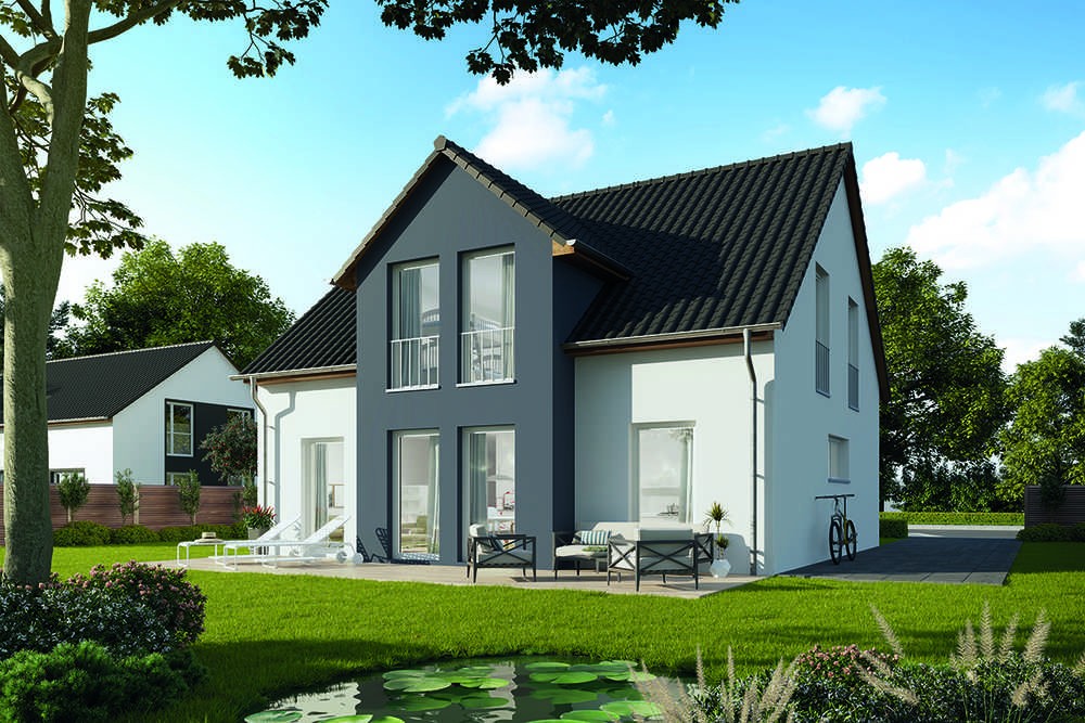 Bebaut wird das Grundstück mit einem FIBAV Massivhaus