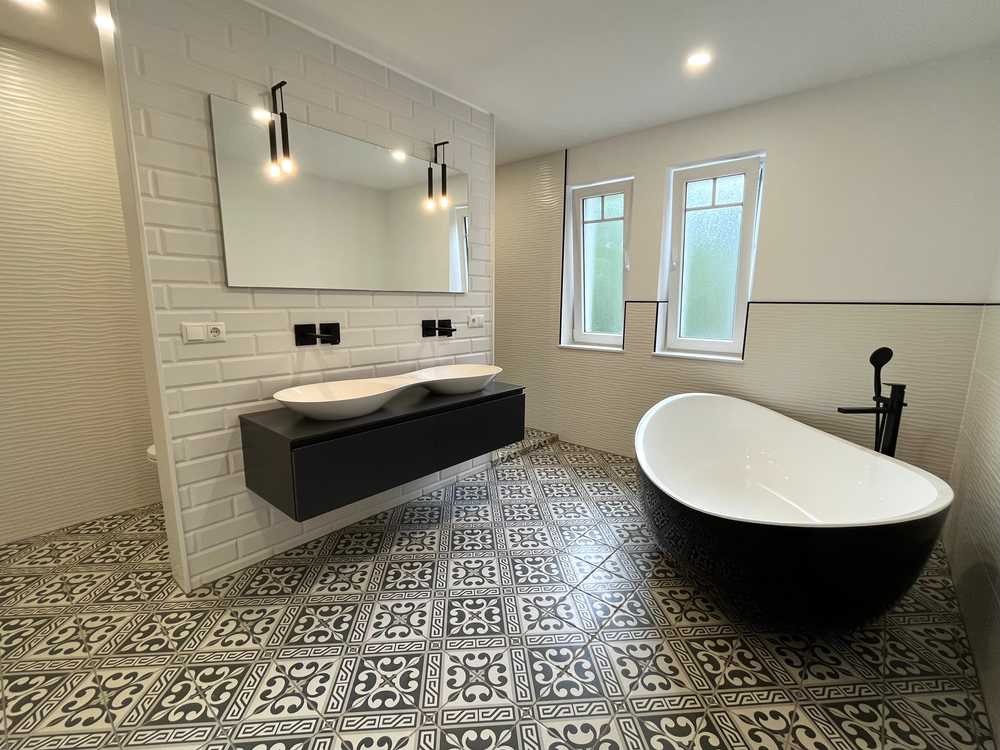 - Schlafzimmer mit Zugang zum Tageslichtbadezimmer mit begehbarer Dusche und Badewanne