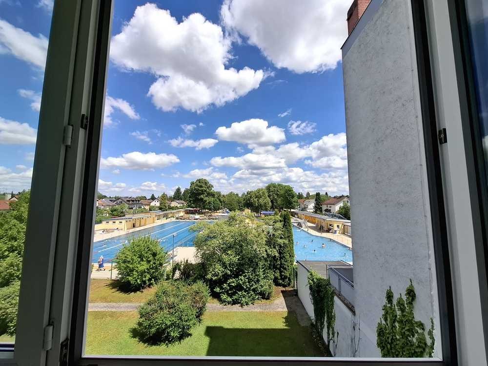 Sehr helle, renovierungsbedürftige, gut geschnittene 3-Zimmer mit Westbalkon auf Erbpacht; 2.OG; Ost-West-Ausrichtung; Ostseite mit Blick auf das Freibad; Aufzug von 2020; Wärmeerzeuger von 2012; Massivbauweise; Duplex-Stellplatz unten; Holzverschlag-Kellerabteil mit Fenster;
