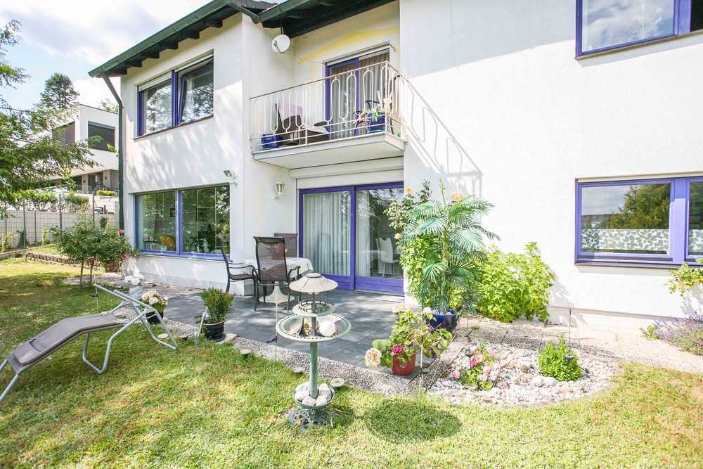 Das Einfamilienwohnhaus bietet insgesamt rd. 193 m² Wohnfläche, welche sich derzeit auf insgesamt sechs Wohnräume verteilt. Im Sockelgeschoss / Erdge-schoss befinden sich talseitig die wunderbar großzügig geschnittenen Wohnräume sowie die voll ausgestattete, abgetrennte Küche. Vom Wohnbereich besteht Zugang zur Südterrasse mit wunderbarem Weitblick über das Aurachtal. Von hier aus erschließt sich den Bewohnern der reizvolle Garten. Hangseitig ist – praktisch – das Gäste-WC an die Eingangsdiele angegliedert sowie die sinnvoll aus-gestalteten Wirtschaftsräume und Räumlichkeiten für die Haustechnik.