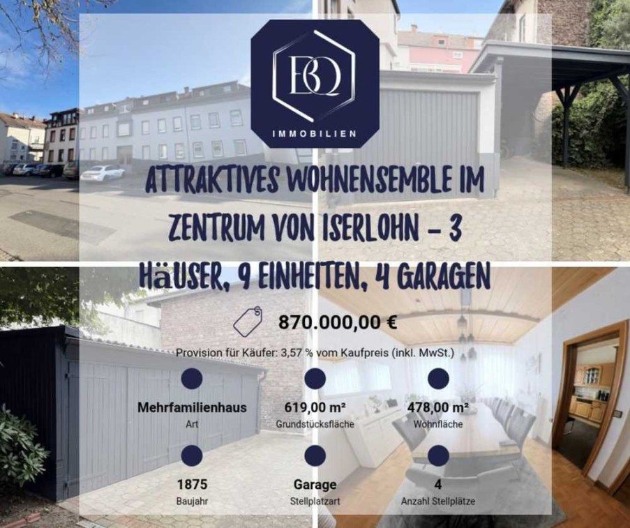 Attraktives Wohnensemble im Zentrum von Iserlohn – 3 Häuser, 9 Einheiten, 4 Garagen