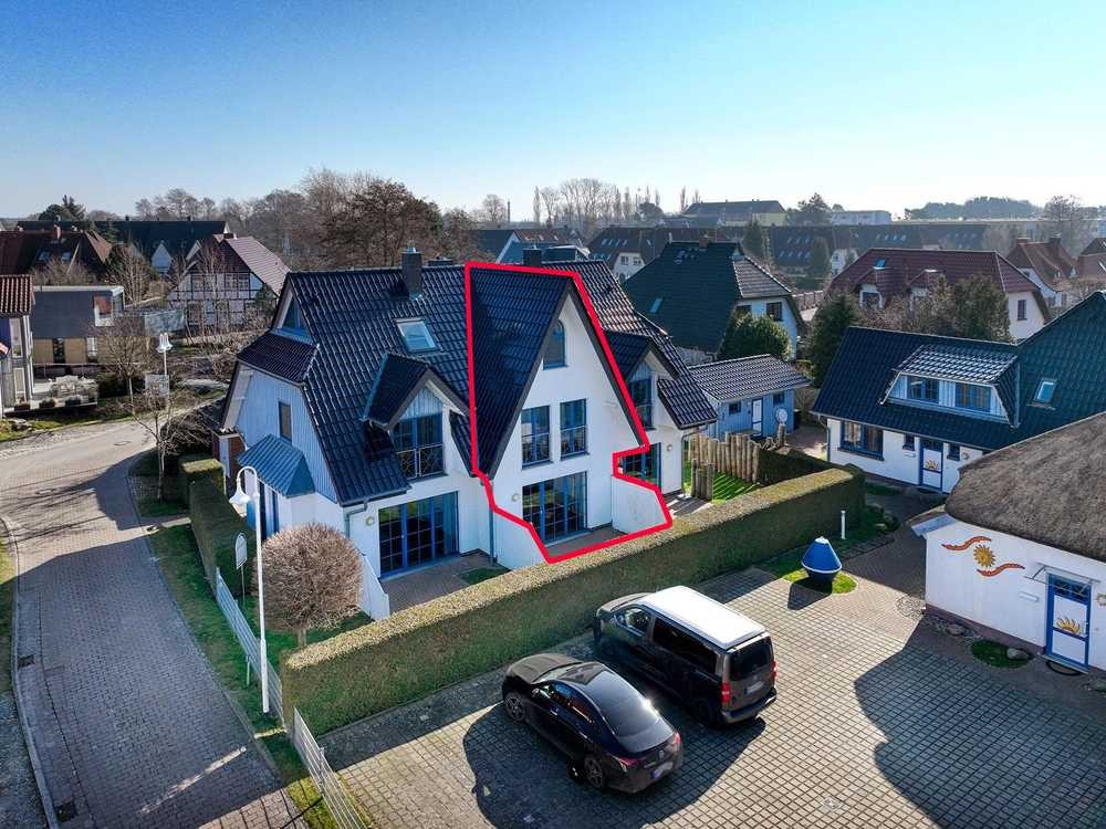 Bei diesem Angebot handelt es sich um eine ca. 97 m² große Eigentumswohnung in ruhiger und strandnaher Lage des bekannten Ostseeheilbades Zingst. Die im Jahr 2003 umgebaute und durch Neubau erweiterte Wohnanlage besteht aus insgesamt 9 Einheiten mit Sondernutzungsflächen, einem Nebengebäude, Außenanlagen, ausreichend Stellplätzen und wird zukünftig zentral verwaltet. Die Massiv-Bauweise, umfangreiche Ausstattung und Verwendung wertiger Materialien zeugen von langlebiger Qualität. Die Nähe zum feinsandigen Ostseestrand und die Annehmlichkeiten der umfangreichen Infrastruktur machen diesen Ort so beliebt. Die angebotene 4-Zimmerwohnung "Seestern" hat einen eigenen Eingang und bietet Wohnkomfort auf 3 Ebenen. Im Erdgeschoss befindet sich das große, offene Wohnzimmer mit sichtbaren Holzbalken, Küche und Essbereich. Besondere Highlights sind der Wohlfühlkamin und die eigene Sonnenterrasse mit Gartenanteil in West-Ausrichtung. Ein Gäste-WC und ein Abstellraum ergänzen das Raumangebot auf der unteren Ebene. Über eine massive Steintreppe gelangen Sie ins Dachgeschoss, wo Ihnen 2 Schlafzimmer, ein Abstellraum und zwei Duschbäder (einmal en-Suite) zur Verfügung stehen. Im ausgebauten Spitzboden erwartet Sie ein weiterer offener Wohnbereich und das dritte, ebenso großzügige Schlafzimmer. In einigen Räumen ist eine komfortable Fußbodenheizung installiert. Im Kaufpreis sind das Mobiliar laut Inventarliste und 1 PKW-Stellplatz enthalten. Das Objekt ist gepflegt und laufende Instandhaltungen sind erfolgt. Beheizt wird die gesamte Wohnanlage mit einer modernen Erdgasheizung aus dem Jahr 2023. In den vergangenen Jahren wurde diese Immobilie erfolgreich an Feriengäste vermietet. Eine ortsansässige Agentur kümmert sich um das komplette Management. Nutzen Sie diese besondere Gelegenheit.