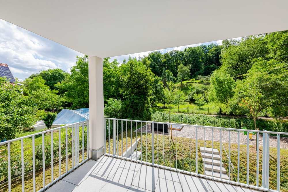 Im Grünen leben! 6-Familienhaus mit Aufzug, mit Südbalkonen oder -terrasse und Blick in eine unverbaubare Lage in Gärten und Mischwald.