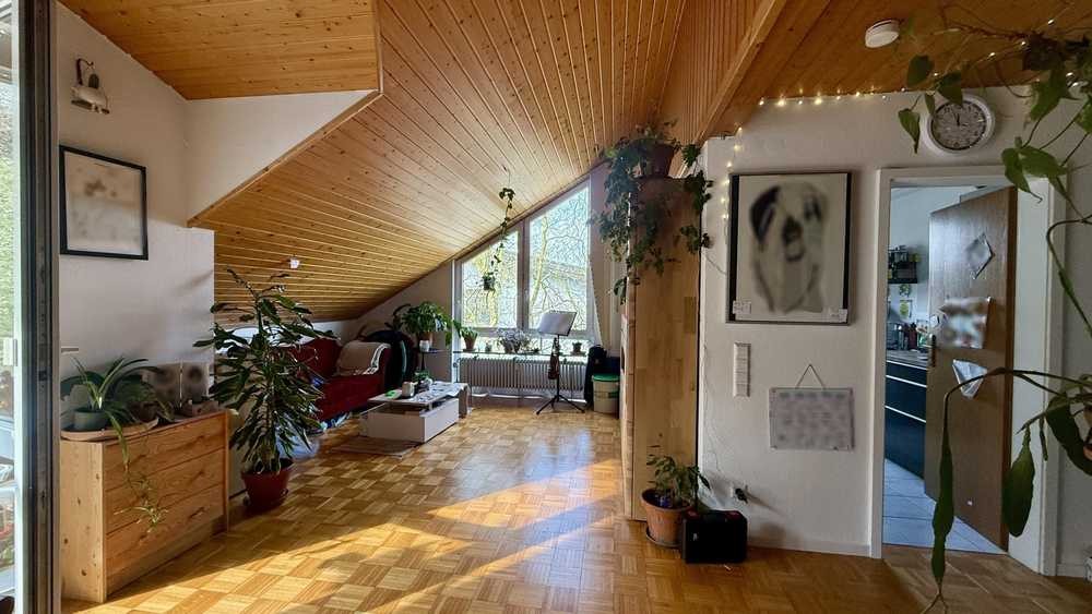 Der großzügige Wohn- und Essbereich bildet das Herzstück der Wohnung. Von hier aus gelangen Sie direkt auf den sonnigen Süd-West-Balkon. Eine offene Treppe führt auf die stilvolle Galerie, die dem Raum zusätzliches Flair verleiht. Das Schlafzimmer besticht durch ein großes Fenster, das viel Tageslicht hereinlässt, sowie praktische Stauflächen, die harmonisch in die Dachschrägen integriert sind. Die separate Küche bietet Platz für eine gemütliche Sitzgelegenheit.