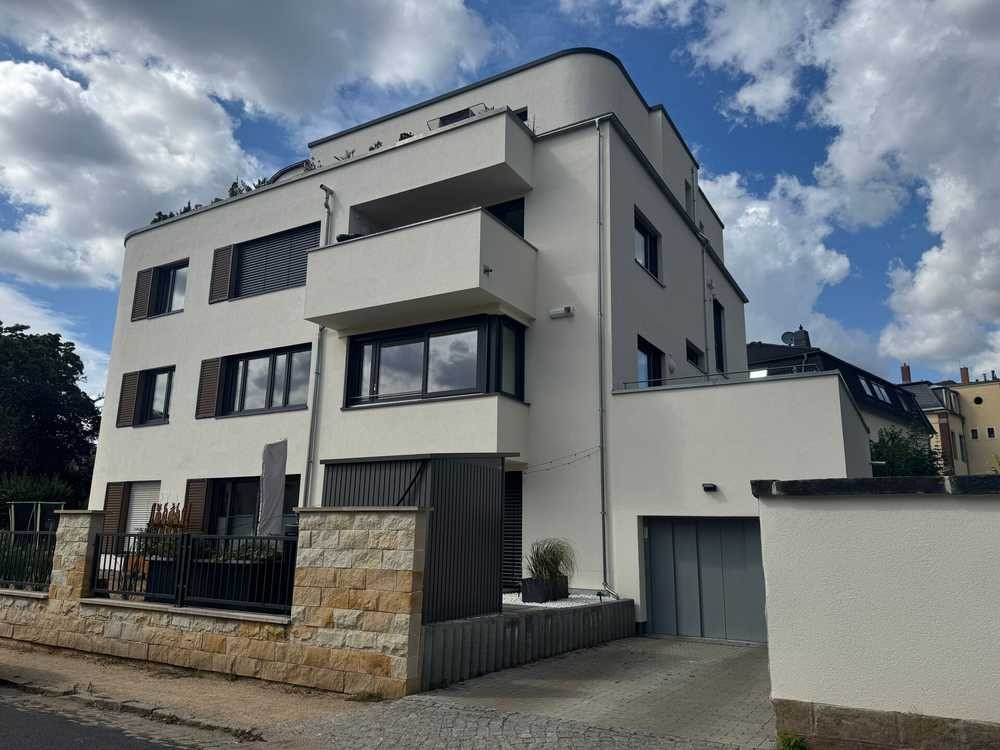 Zu verkaufen ist eine exklusiv ausgestattete, helle und großzügig geschnittene 4-Zimmerwohnung mit großer Terrasse und wunderschönem Ausblick auf die Radebeuler Weinberge, separater Küche mit kompletter Einbauküche, Badezimmer, Gäste-WC, Flur, Abstellraum, Keller und Tiefgaragenstellplatz mit Vorbereitung für den Anschluss einer Wallbox. Die Wohnung mit Süd-/ West- und Ostausrichtung und ca. 119,04 m² Wohnfläche befindet sich im 1. Obergeschoss eines 2022 errichteten Mehrfamilienhauses mit nur 7 Wohneinheiten, Aufzug und Tiefgarage in einer der begehrtesten Wohnlagen oberhalb von Radebeul-Mitte. Besonders hervorzuheben sind ein großer, lichtdurchfluteter Wohn-/ Essbereich mit einer sich anschließenden Küche, von welcher man auf die ca. 24,50 m² große nach Osten und Süden ausgerichtete Terrasse gelangt. Ein schöner Ausblick sowie viele Fenster im Wohnbereich sorgen für eine freundliche und lichtdurchflutete Wohnatmosphäre. Eine komplette Einbauküche, ein modernes helles und voll ausgestattetes Badezimmer sowie ein Gäste-WC, elektrisch bedienbare Raffstores an den Fenstern im Wohnbereich und zur Terrasse sowie Rollläden in den weiteren Räumen komplettieren das Angebot.