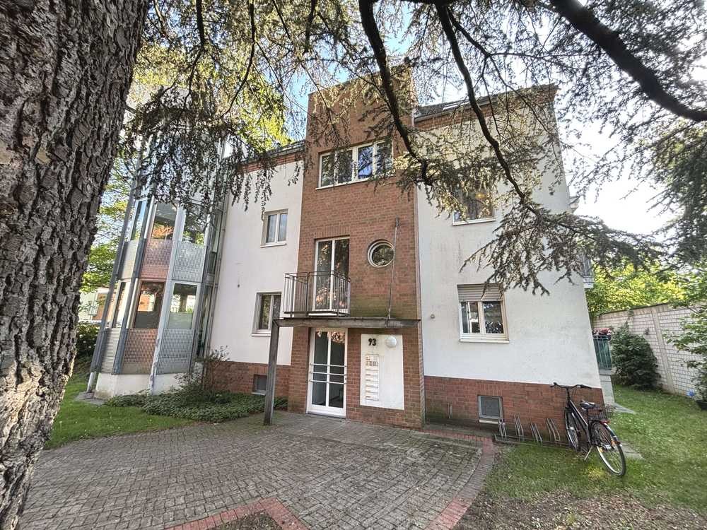 Die zum Verkauf stehende Wohnung befindet sich in einem ruhigen Gebäude mit insgesamt 6 Einheiten und bietet auf ca. 72 m² ein komfortables, lichtdurchflutetes Zuhause. Der Eingangsbereich führt in eine geräumige Diele, in der ausreichend Platz für eine Garderobe ist. Links befindet sich das Badezimmer, ausgestattet mit Badewanne, Dusche und weißen Fliesen.