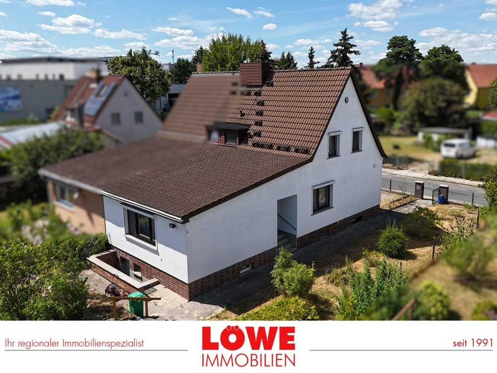 Eingebettet in ein ca. 550 m² großes Grundstück präsentiert sich diese Doppelhaushälfte (Baujahr um 1936) als wohnlicher Rückzugsort im Zentrum von Ludwigsfelde. Der großzügige Anbau aus dem Jahr 1991 erweitert das Haus behutsam und fügt sich stilvoll in die bestehende Bausubstanz ein. Rückwärtig verfügt das Grundstück über eine separate Torzufahrt zum Garten sowie über eine freistehende, massive Garage (ca. 5,25x7,5 m) mit Grube. Im Inneren bietet das voll unterkellerte Haus vielfältige Nutzungsmöglichkeiten für Familie, Beruf und Freizeit.