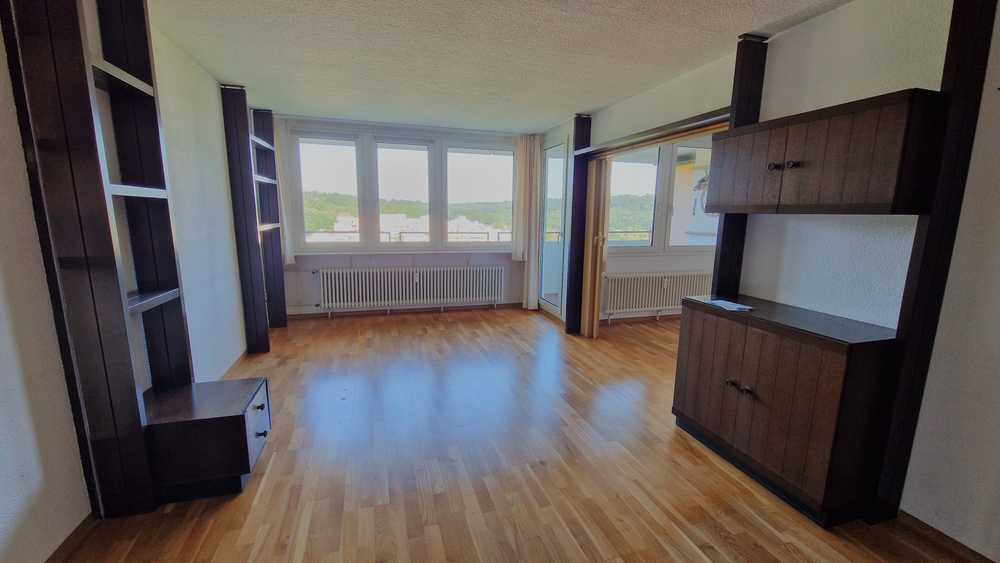 Die intelligent geschnittene Wohnung bietet Ihnen auf 57,5 Quadratmetern alles, was Sie für ein gemütliches Zuhause benötigen. Der grosszügige Wohn- und Essbereich lässt sich durch eine Faltschiebetüre in die urspünglich angedachte klassische 2-Zimmer-Aufteilung trennen. Das Schlafzimmer bietet ausreichend Platz für ein Doppelbett und grosse Kleiderschränke. Das Highlight ist sicherlich der überdachte Balkon mit Abstellraum von dem Sie einen herrlichen Weitblick in die grüne Umgebung haben. Das Badezimmer ist praktisch aufgeteilt und verfügt über eine Badewanne, ein Waschbecken und eine WC-Toilette. Die zusätzliche Abstellkammer bietet genügend Stauraum für die gebräuchlichsten Dinge und vorallem Platz und Anschluss für Ihre Waschmaschine. Die zum Wohnzimmer offene Küche ist mit einer Einbauküche ausgestattet und bietet ausreichend Platz. Einbaumöbel und die Ausstattung sind der damaligen Zeit entsprechend. Die Fenster und das Bad wurden in der Vergangenheit erneuert. Die grossen Fenster Richtung Osten und der freie Blick lassen viel Licht in die Wohnräume und schaffen eine angenehme Atmosphäre. Die Wohnung ist barrierefrei bequem über einen Fahrstuhl zu erreichen. Bereits im Kaufpreis enthalten sind ein zur Wohnung gehörender eigener separater Kellerraum und eine eigene abschliessbare Tiefgaragenbox für Ihr Fahrzeug. Hausgemeinschaftliche Einrichtungen wie Kinderwagenabstellplatz, Fahrradkeller etc. stehen im Gebäude ebenfalls zur Verfügung.