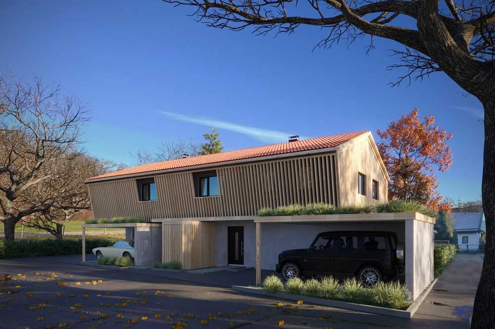 In der Gemeinde Waakirchen, am Ortsrand von Hauserdörfl, entstehen zwei modern gestaltete Doppelhaushälften in nachhaltiger und zeitgemäßer Holzrahmenbauweise.