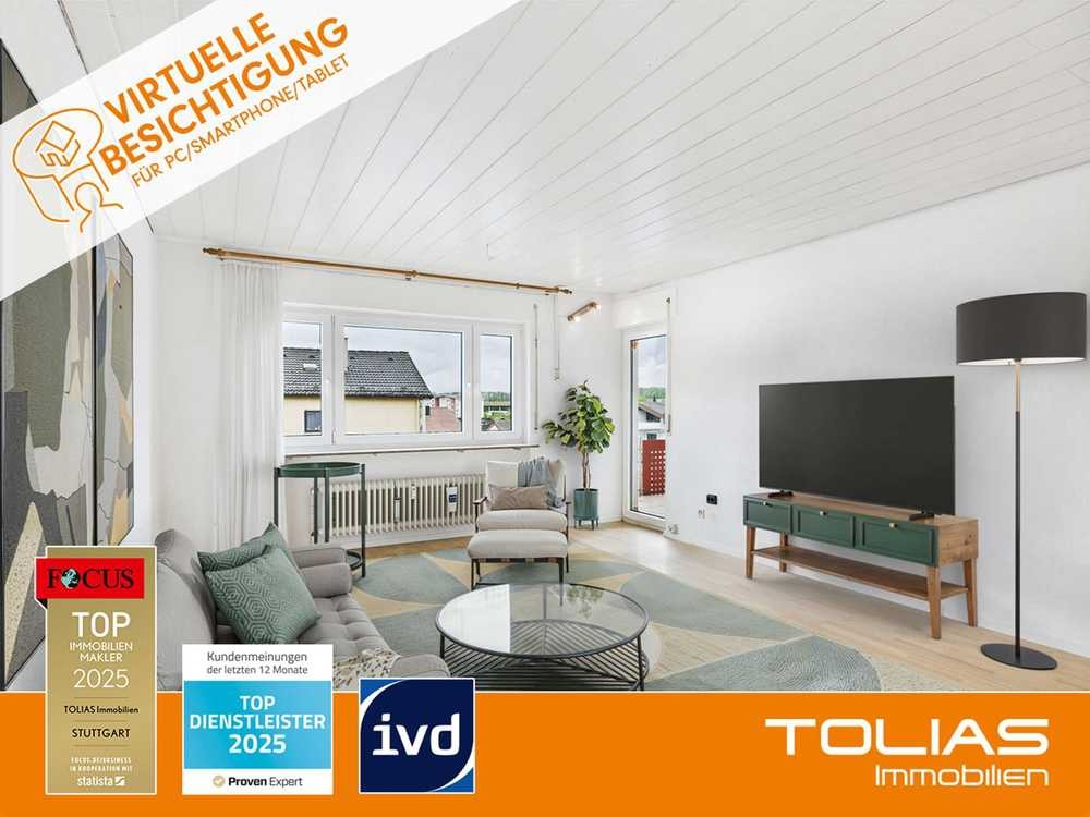 - Der großzügige, helle Wohn- und Essbereich führt auf den überdachten Südbalkon mit Blick ins Grüne