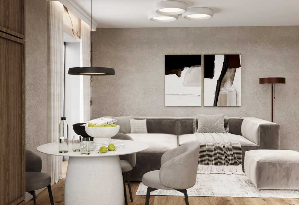 Der offen gestaltete Wohn- und Essbereich mit integrierter Küche bildet das Herzstück der Wohnung. Großzügige Fensterflächen sorgen für eine freundliche Atmosphäre und leiten harmonisch über in den geschützten Außenbereich – ideal für entspannte Stunden im Freien.