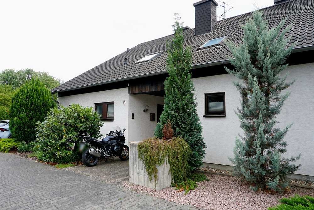Vom Wohnzimmer aus gelangen Sie direkt auf die überdachte Terrasse und in den liebevoll angelegten Garten. Eine feste Trennwand zum Nachbargrundstück schafft eine klare räumliche Abgrenzung und sorgt gleichzeitig für ein hohes Maß an Privatsphäre. Die Garage mit einer Fläche von ca. 24,5 m² ist sowohl über das elektronische Garagentor als auch durch einen Zugang von der Terrasse aus erreichbar. Von dort führt eine Wendeltreppe in einen gleich großen Kellerraum, der zusätzlichen Stauraum oder Platz für Hobbys bietet.
