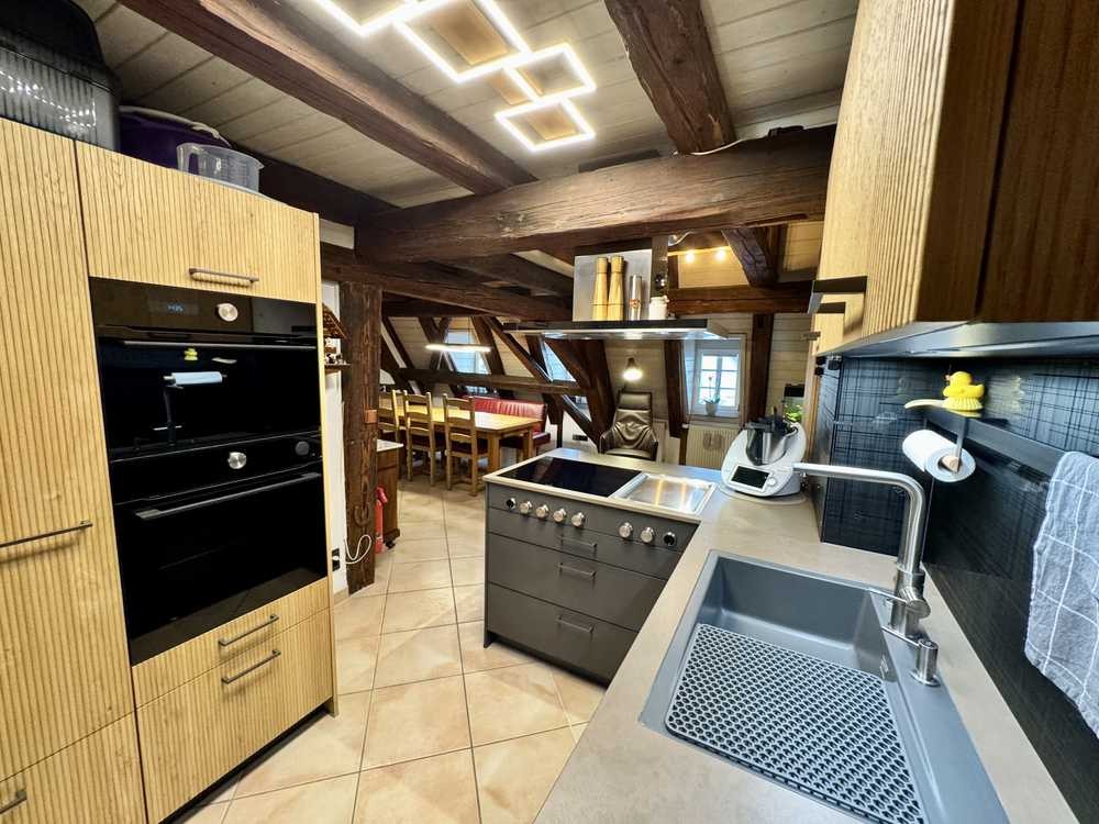 In dem wunderschönen Gebäude verkaufen wir eine 3,5 Zimmerwohnung. Das schöne Fachwerkhaus wurde 1989-90 aufwendig kernsaniert und auf einen aktuellen technischen Stand gebracht. Die Wohnung wurde laufend durch die Eigentümer aufwendig und in einem gehobeneren Standart umgebaut. Zur Wohnung gehört eine moderne und hochwertige Einbauküche. Neben der Küche befindet sich der Essbereich. Der Wohnbereich beeindruckt mit seinem Fachwerk und lädt zu geselligen Abenden mit Freunden ein. Das Badezimmer verfügt über eine Badewanne in einem Tageslichtbad . Unter dem Spitzdach befindet sich eine großzügige Galerie mit Schlafbereich, Zur Wohnung gehört eine Doppelgarage. Im vorhandenen Keller können Sie Ihr Hab und Gut bequem unterbringen.