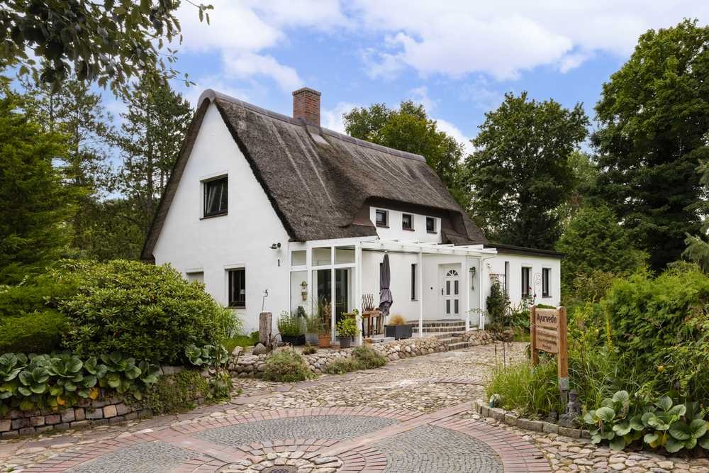 Das um ca. 1950 errichtete Haupthaus mit klassischem Reetdach und stilvoller Kupferhaube bietet ca. 140 m² Wohnfläche: Im Erdgeschoss liegen das helle Wohnzimmer mit Kamin, eine separate Küche, ein gemütlicher Wintergarten, ein Badezimmer sowie ein Hauswirtschaftsraum. Im Dachgeschoss befinden sich drei Schlafzimmer – ideal für Familien, die Raum zum Leben und Wachsen suchen.