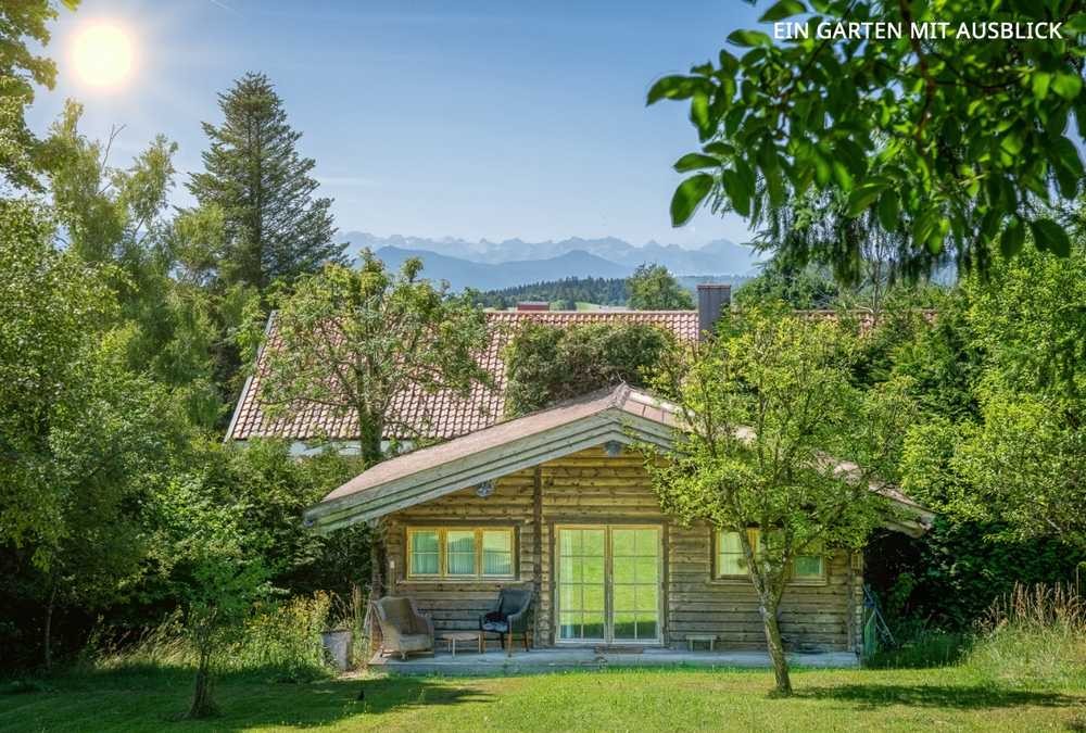Ein Zuhause in schönster Natur, ruhig und privat gelegen am Ende einer äußerst selten befahrenen Straße, die wenige Meter entfernt an Feldern und Wiesen als Sackgasse endet. Auf einer leichten Anhöhe gelegen eröffnet sich vom konsequent nach Süden ausgerich- teten Anwesen ein imposanter Weitblick auf die Bergkette der am Horizont emporsteigenden Alpen.
