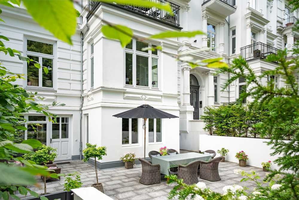 Diese außergewöhnliche Maisonettewohnung befindet sich in einem der repräsentativsten Viertel Hamburgs – im begehrten Harvestehude. Das historische Gebäude stammt aus dem Jahr 1889 und steht beispielhaft für die eindrucksvolle Architektur der Gründerzeit. Die elegante Fassade, das hochwertig sanierte Treppenhaus und zahlreiche Stilelemente im Inneren zeugen vom besonderen Charme dieser Immobilie.