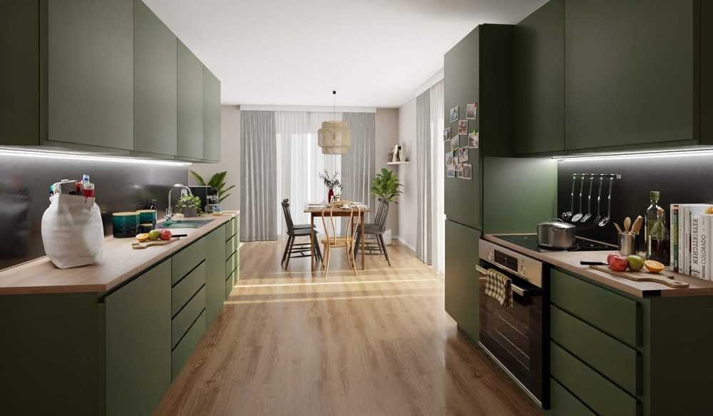 Diese Ferienwohnung überzeugt durch ihre klare Raumaufteilung, ideal für dauerhafte Vermietung oder saisonale Nutzung. Ein offener Eingangsbereich führt direkt in das Wohnzimmer mit integrierter Küche. Große Fenster bringen Tageslicht in den Wohnraum und schaffen den Zugang zum großzügigen Balkon. Die Küche ist offen und praktisch, optimal für unkomplizierte Abläufe. Das Schlafzimmer bietet eine ruhige Rückzugsmöglichkeit und das moderne Bad ist mit einer bodengleichen Dusche ausgestattet. Ein zusätzlicher Abstellraum schafft Stauraum für Ihre Feriengäste.